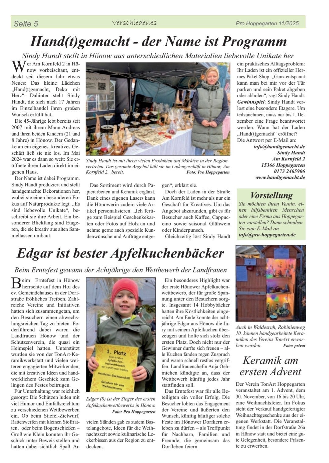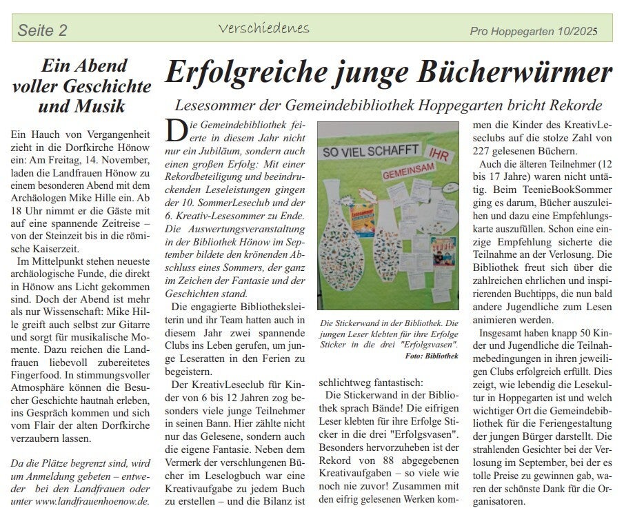 Artikel aus der ProHoppegarten, in denen die Landfrauen Hönow erwähnt werden
